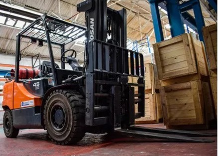 The review presented an opportunity to consider whether Doosan’s latest products could offer greater versatility than their current older models. On analysis, Rushlift identified the potential to rationalise the fleet by replacing a 7 tonne counterbalance truck and a smaller 3.5 tonne capacity forklift with a highly versatile 4.5 tonne Doosan gas truck, the G45SC. The new Doosan G45SC was capable of working both within the facility and, as it had a lower cab specially fitted, was well suited to unloading containers as well.
