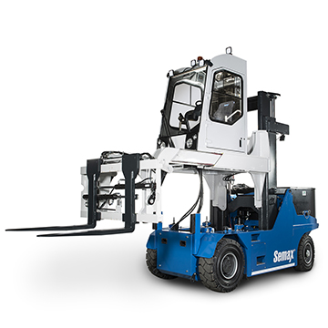 All forklifts are built in Sweden using a unique construction. They are designed to work efficiently and fast even in small areas, and the built-in extension provides an unbeatable reach. It also creates new opportunities in the material handling process. This system enables more precise handling with reduced damage to goods as a result. The possibility of loading/unloading trucks and train wagons from one side with forks, or other suitable aggregates, is what makes Semax's solution unique.