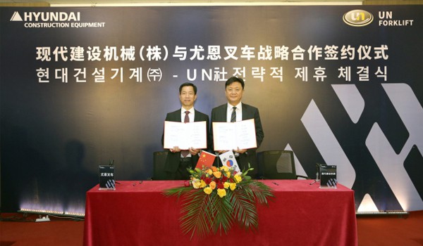 Hyundai Construction Equipment announced Thursday that it signed an original equipment manufacturer (OEM) contract with Zhejiang UN Forklift in China.