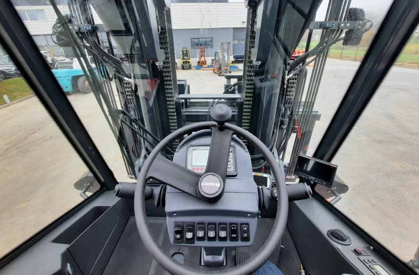 What immediately catches the eye is the excellent visibility in all directions. The large screens and the outer cylinders of the masts give every single user a clear view of the loads. They can interpret every single situation such as the presence of walls, pillars, narrow spaces, approaching loads, people around the truck or unexpected obstacles on the ground.