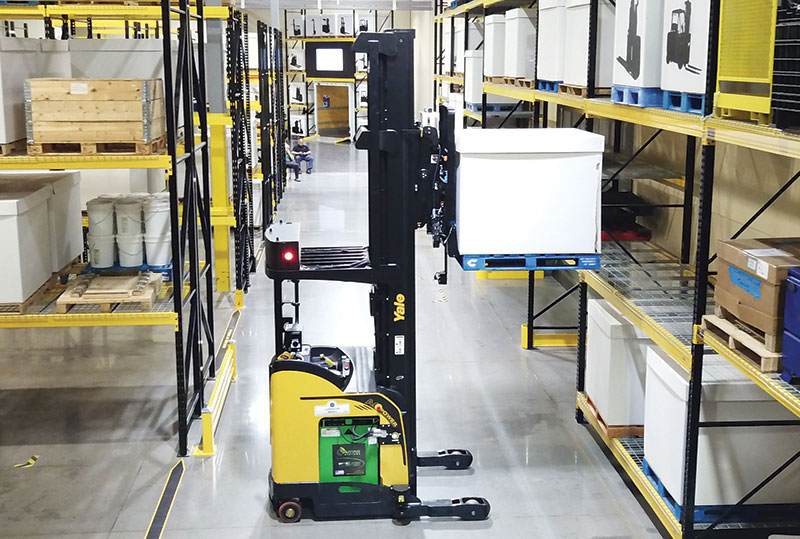 Crown reach trucks are being used for automatic putaway and retrieval in upper levels of reserve storage rack, and KION has autonomous VNA lift trucks in the field. The lift truck maker has also put them to use in difficult environments, such as freezers. Yale has autonomous lift trucks able to automatically load and unload trailers.