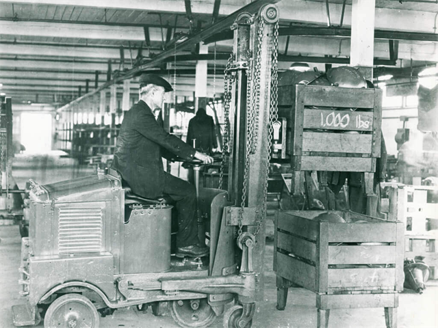 In 1924 Clark introduced a Duat with an optional tiering attachment, the world's first internal combustion forklift