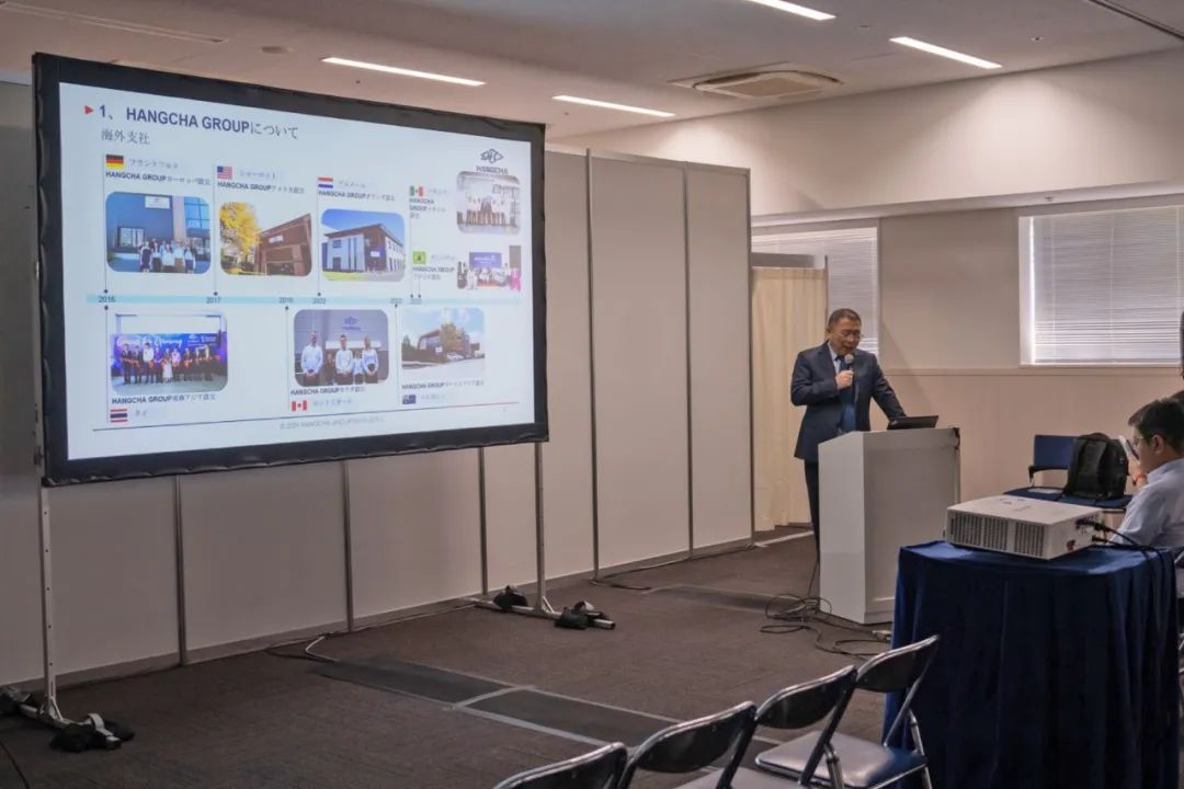 George Zhang, Deputy General Manager of Hangcha International, spoke on "Hangcha's Lithium Technology Empowering Japanese Logistics," emphasizing the XE Series and their industry applications for more efficient and eco-friendly logistics.