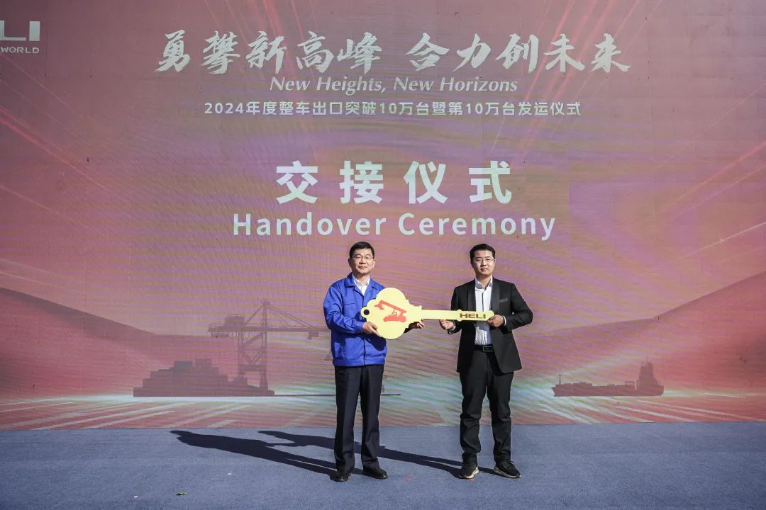 A ceremonial shipping event marked HELI's achievement of exporting its 100,000th vehicle in 2024, held at the company's Industrial Park on October 25. Under the theme "New Heights, New Horizons," the ceremony celebrated this significant milestone while setting ambitious goals for the future.