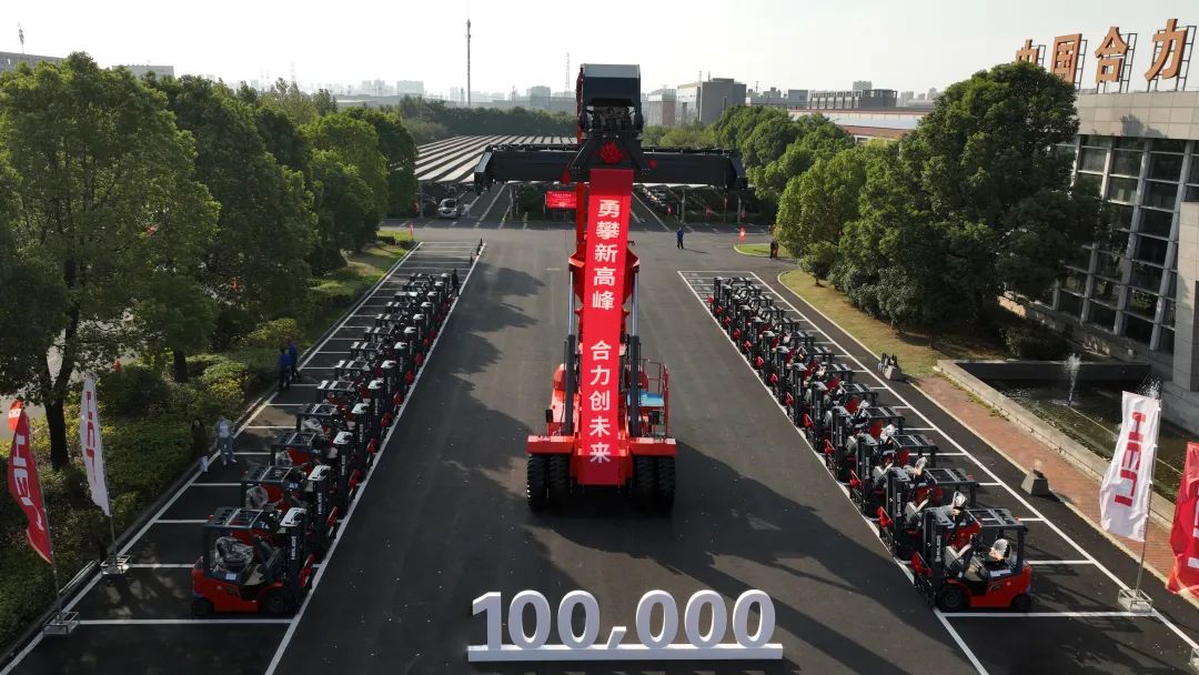 The milestone moment was marked when Zhou Jun officially announced the shipment of the 100,000th forklift through HELI Import and Export Company. The reach stacker's boom extended gracefully while surrounding forklifts sounded their horns in celebration, creating a memorable moment that both honored past achievements and symbolized future international aspirations.
