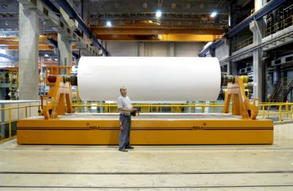 The size of the rewinder’s reeling drum is approximately 5.5 m in width, 2.6 m in diameter and weighs about 30 tonnes. Transferring a reeling drum of this size safely and without damage requires in-depth expertise on the part of the automated truck manufacturer regarding heavy-duty steel construction as well as the demands placed by mobile technology on the suspension and reel supports’ shock absorbers.