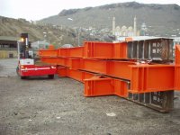 Special steel profiles of lifting mast with traverse guide rollers mounted on high resistence bearings;