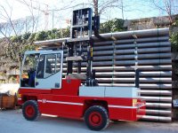 Side Loader with Diesel engine and large pneumatic tyres 32-12.1x15 for driving and handling inside and outside on any kind of ground and any weather condition.