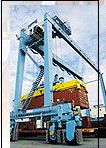 轮胎龙门吊运机也能用来装卸集装箱、拖架或铁路卡车的集装箱搬运。