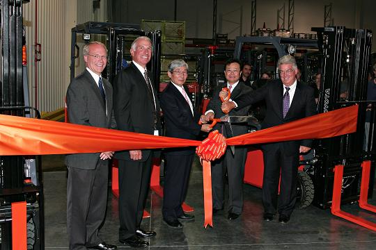 COLUMBUS, Ind. (August 3, 2010) – Toyota Industrial Equipment Mfg., Inc. (TIEM), the Indiana-based company responsible for manufacturing Toyota brand lift trucks, marked production of the new 8-Series, 4-wheel electric AC lift truck with a line-off ceremony. The occasion, which also commemorated the manufacturing plant’s 20th anniversary, was attended by TIEM’s 600-plus associates.