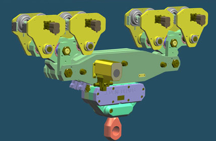 Designated as an EH 125 monorail hoist, the unit operates from a 6 bar air pressure and is equipped with 10kW and 2.8kW rated motors for the lifting and traverse functions respectively. In standard format, the hoist is supplied with a six double-chain mechanism providing a three metre lift at speeds of 0.30 m/min within a full load, and 0.38 m/min on lowering. Horizontal travel speeds of 6 m/min are achieved with maximum load and 8 m/min when unloaded. A two metre length flexible connection is supplied with an ergonomic multi-function pendant controller for precise, infinitely variable control of the lift/lowering and traverse operations for safe, accurate load placements.