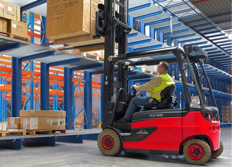 The Roadster version was made possible thanks to the tilt cylinders mounted on the top of the lift mast — a selling point unique to all Linde counterbalance trucks with a lifting capacity of up to 8 tonnes. The tilt cylinders redirect the forces on the lift mast into solid cast supports at the rear of the truck. The protective roof consists of two panes of special, laminated safety glass, which mirror the back and forth movements of the mast. The new overhead guard replaces the A and B pillars, as well as the roof column and roofing sheets, opening up the roof of the truck to provide an unobstructed upwards view for the driver, without roofing sheets in the way. The glass roof fitted to the lift mast also provides protection against loads that could fall through between the mast and the driver's seat.