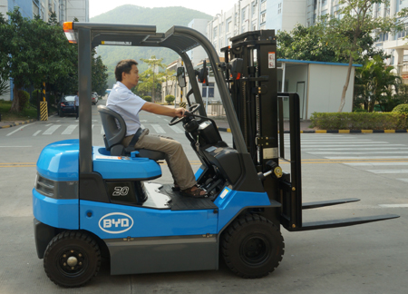 As a leading company in the field of rechargeable batteries, BYD Company stays as the No.1 enterprise in terms of battery technology and industrial scale in the whole world. BYD holds the advantages on battery technology which is the core and the key on the electric vehicles. The battery technology mastered by BYD is called iron battery, and is now successfully applied on BYD E6 series of electrical autos and BYD K9 series of electric buses, which have been highly praised by the government and the media during Universiade 2011 Shenzhen. Relying on the state-of-art iron battery technology, BYD entered electric forklift industry in 2009, with investment of RMB 200 million Yuan. After three-year’s preparation and technological development, the first phase of project had been built up in Huizhou Industrial Park, and it had become a production base for electric forklifts with annual production amount reaching 2,000 sets. As for the second phase of project, BYD plans to construct a production base of 20,000 square meters for construction vehicles, which will be put into production since 2013 with an expected annual production amount of 20,000 sets.