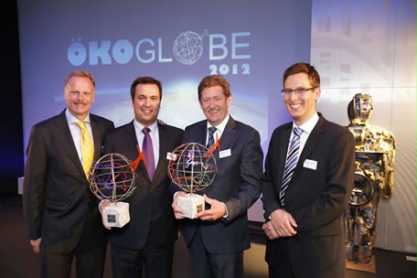 The annual presentation of the OekoGlobe awards was held at the TÜV Rheinland building on 17 October 2012. The award ceremony was one highlight of the festivities for the 140th anniversary of the foundation of TÜV Rheinland (technical services), which is the main sponsor of the competition alongside DEVK Versicherung (insurance) and Finanzverlag (publishing). The ceremony was attended not only by representatives of the nominated companies and the judges, but also by important business personalities, especially from the automotive industry.