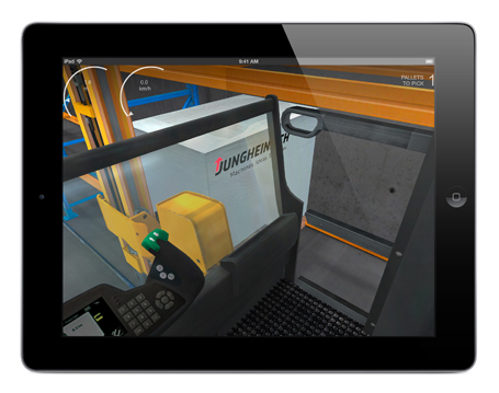 Jungheinrich is unveiling its first app ever in December 2012. This application consists of a game which simulates the Jungheinrich warehouse navigation system. “This innovation allows the user to experience the advantages of warehouse navigation on his or her iPad, iPhone or iPod Touch firsthand,” explains Sebastian Riedmaier, Head of Warehousesing and Systems trucks Product Management at Jungheinrich. “You become the forklift driver as you attempt to outperform our warehouse navigation system in terms of your manual efficiency and speed.” The new app offers a racing as well as a training mode, and is immediately available for free downloading at the App Store. Users who prefer to play the game on a computer can choose between a Mac and a Windows 7 version.