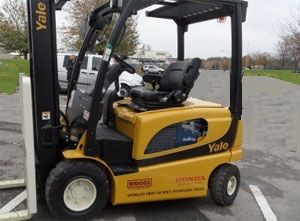 The modified Yale trucks are configured to use a small lithium-ion battery which partners with the fuel cell to ensure that the battery remains charged. The battery can then operate as a normal power unit for all mobility and lift functions, supplied from its compact battery source. The hydrogen fuel cell acts as an on-board charger allowing the truck to work more efficiently as its normal routine of battery switching and remote charging is avoided.