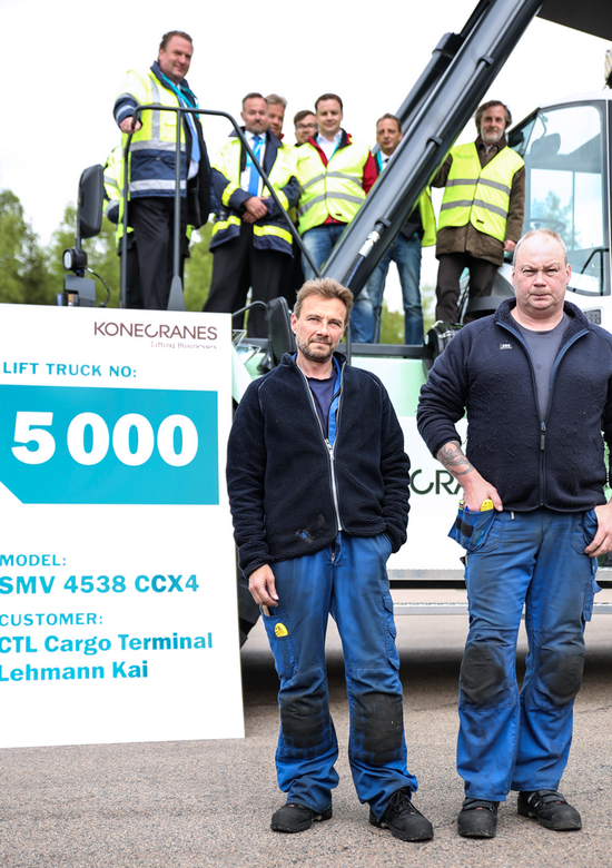The Lift Truck business of Konecranes celebrated an incredible milestone on May 28 as it handed over its 5,000th unit. Testament not only to the increasing popularity of these machines, but also to Konecranes consistency and expertise. The special customer receiving the 5,000th machine is the Cargo Terminal Lehmann, owned and managed by the Hans Lehmann group, a German shipping and ports operations company with further interests in ready-mixed concrete.