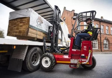 The M5 NX is light enough to be carried on almost any truck or trailer, yet it can lift up to 2,500kg, giving it a highly efficient power to weight ratio. It is available with the option of the Lift AssistTM system, enabling it to safely unload from one side, which gives it supreme flexibility in confined spaces and situations where a normal front-loading forklift simply could not operate. So, whether there is a need to unload in busy streets, congested urban environments, or simply on a building site, the M5 NX is capable of delivering a wide range of products, from building supplies and industrial gasses, to animal feeds and turf, quickly and safely.