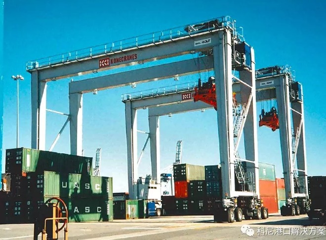 That customer was, and is, the Georgia Ports Authority (GPA). Here you see the first of our RTGs delivered to the GPA’s container terminal in Savannah. The year was 1995. These machines were equipped with our Active Load Control System, which eliminated container sway. The RTG operators loved those machines.