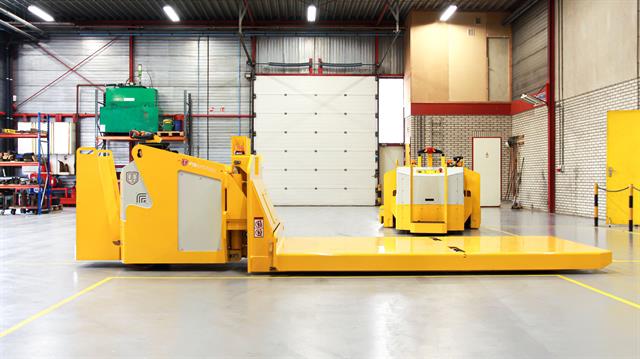The special platform trucks were developed to change out batteries for automated guided vehicles (AGVs). The Port of Singapore uses these AGVs for unattended and automatic transfer of sea containers. To ensure 24/7 availability, these electric carriers require regular battery changes.