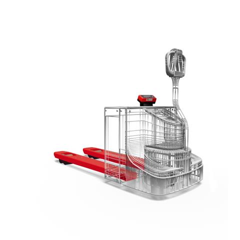 The scale truck lifts a pallet, the weight of the pallet immediately appears in the display.