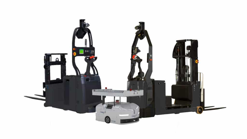 Specific AGVs (automated guided vehicles), traditional automatic vehicles that have been present in industry for almost 30 years and standard manual forklift trucks converted into autonomous vehicles.