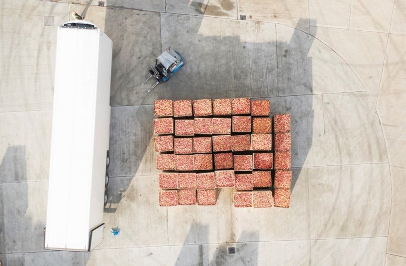 Cottage Farms uses a fleet of BYD ECB20 four-wheel counterbalance fork lift trucks to load and unload crates of apples outside in all weathers.