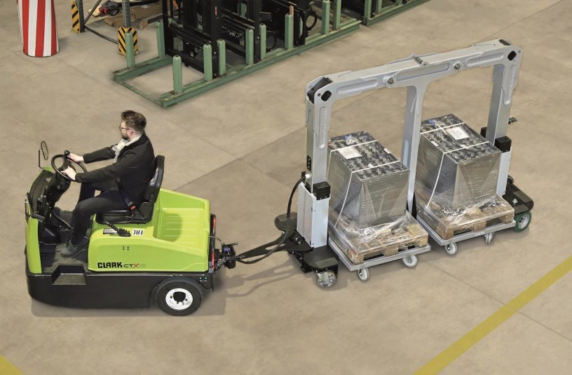Tugger trains and a synchronized material supply are an important component of value-added and customer-oriented production logistics – this has long been recognized by the automotive industry. For this reason, Clark has launched a tugger train system that specifically addresses the specific requirements of industrial customers. With the Clark tugger train, material transports over longer distances can be organized efficiently, safely and extremely flexibly.