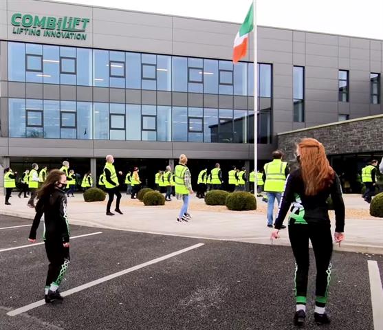 "There was great enthusiasm on behalf of the staff to take part," McVicar tells Forkliftaction News, and that even extended to employees' families. A dance section at the end features 10 dancers from the local Irish dancing school, who are children or friends of members of staff. The production was a welcome outlet for the Scoil Rince Ní Bhrogáin which usually performs in Monaghan town on St Patrick's Day, but was not able to do so this year because of COVID-19 restrictions.