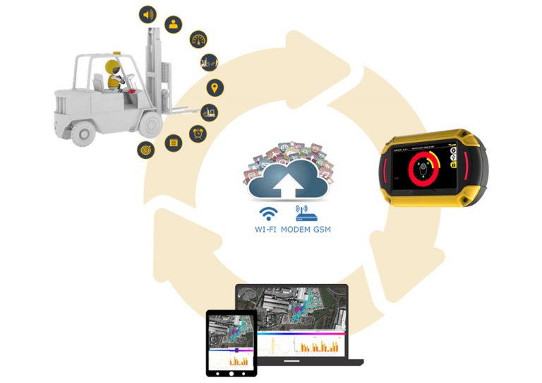 Once EGOpro Safe MOVE has been installed on the forklift and the operators moving around the vehicle have been equipped with an active TAG, the system signals in real-time the imminent danger and historicizes all the events/interactions that take place during the whole working day between the moving vehicle and the operators.