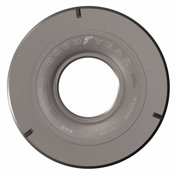 The enhanced construction demonstrates a new cavity shape. Goodyear’s engineers have developed this to reduce wear, lowering the cost per hour. The construction of both tires also includes an oversized high strength bead bundle to enhance stability when carrying high loads. This bead area has increased protection to reduce chafing.