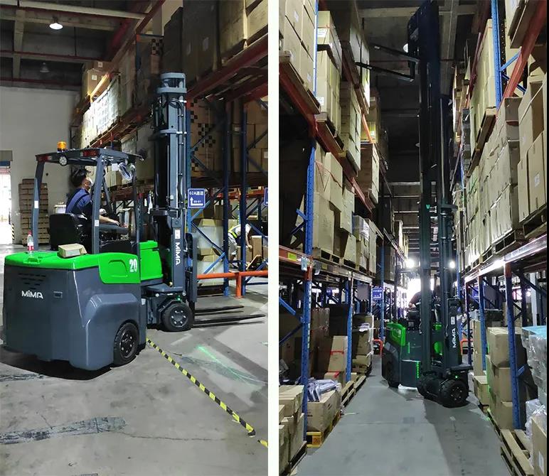 When you need additional storage space, you can choose to expand your existing facilities or relocate. But if you have a MiMA articulated forklift, you can increase the storage capacity of the warehouse by optimizing the rack layout and reducing the aisle width. MiMA articulated forklift is your ideal choice!