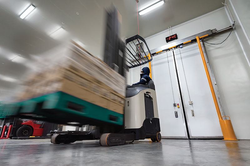 Some cold storage DCs may opt for automated storage and retrieval systems or other automation to minimize the need for lift trucks. But for many cold storage DCs, electric lift trucks are relied upon to handle goods.