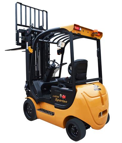 The LXE50 Spartan is a 5,000 lb. (225 kg) capacity cushion-tyred model that shares the same design attributes as an internal combustion truck of the same capacity.