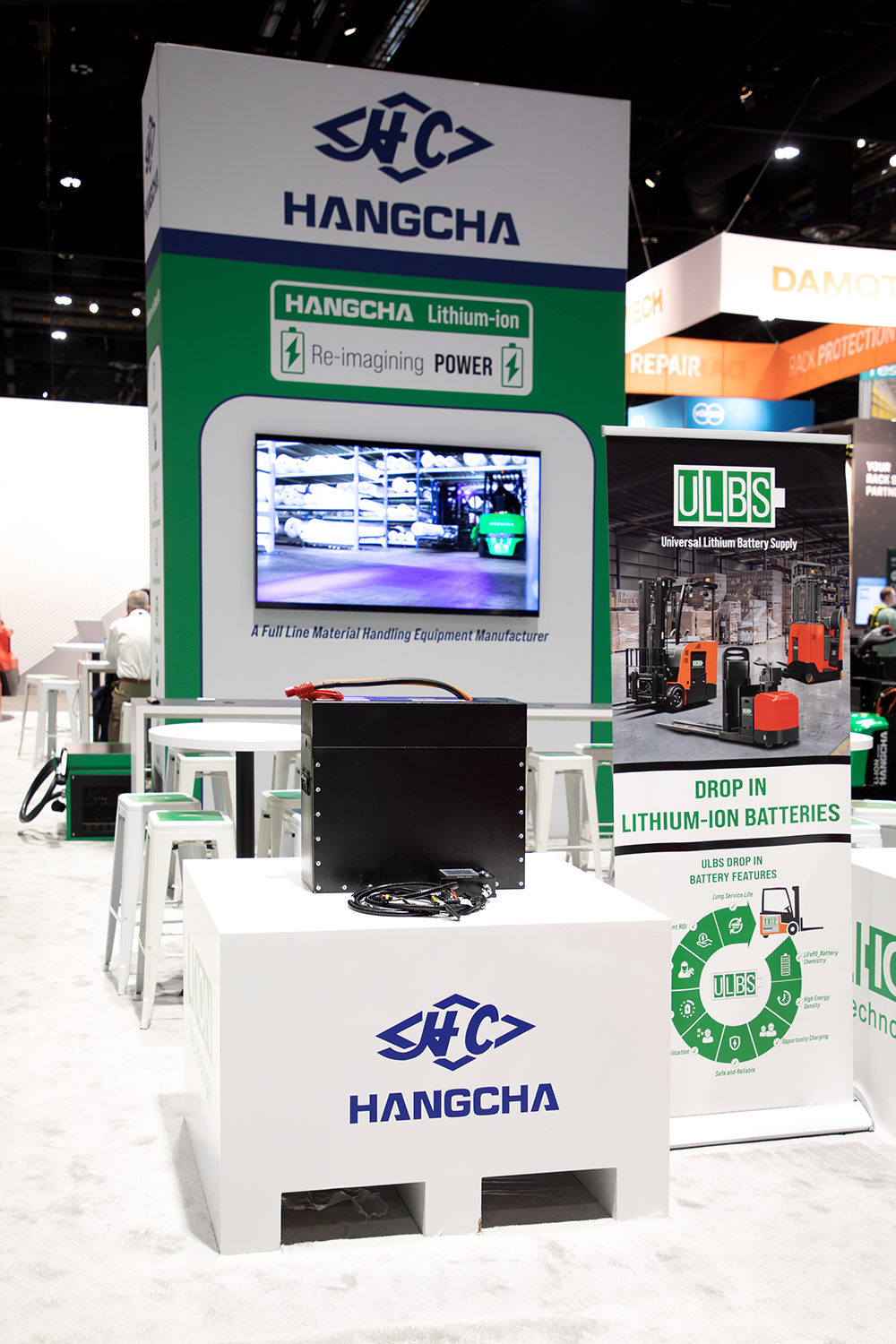 The New XE Series Electric Lithium-ion ForkliftPROMAT 2023 attendees were also able to get a first glimpse at Hangcha’s new drop-in battery company, Universal Lithium Battery Solutions (ULBS).This is a new solution that will allow end users to convert their lead-acid powered electric material handling equipment, from any brand to a Lithium Iron Phosphate (LiFePO4) powered unit. This gives users the ability to power their existing equipment with the same battery technology that our full line of lithium-ion powered material handling equipment continues to successfully use.