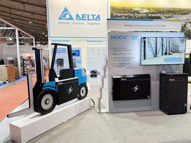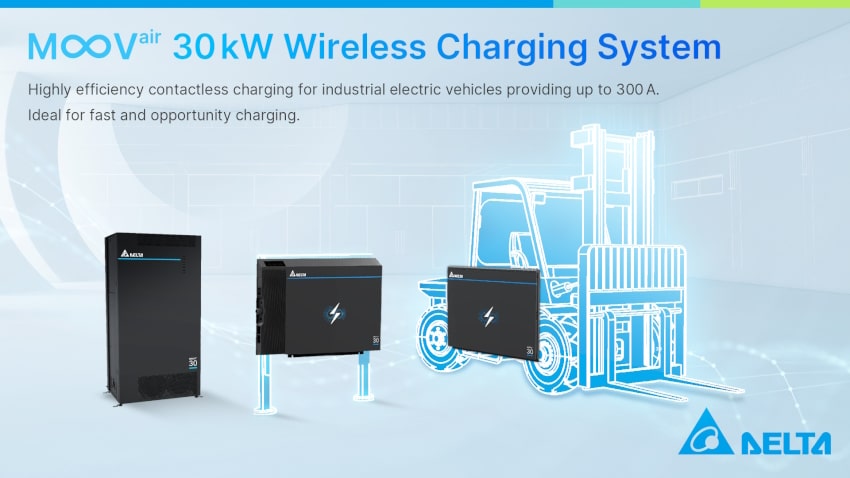 Delta, a global provider of power and thermal management solutions, presents its latest MOOVair30 kW Wireless Charging Systemto logistics, industrial and other fields that require electric forklifts, trucks and other large power e-mobility devices. The System features advanced contactless power transmission and Delta’s 50-plus years of expertise in high-efficiency power electronics, to charge electric forklifts with up to 95% peak efficiency. It is the ideal solution to boost the rapid demand for electric forklifts in fast-growing smart factories across the world. MOOVairhelps solve the common need for additional manpower to plug in, unplug and perform constant maintenance in traditional charging equipment.