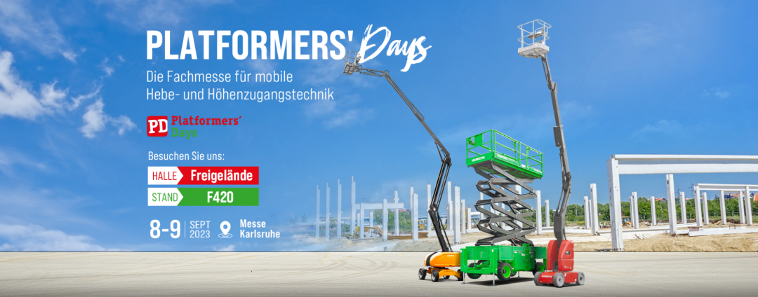 We're cordial to invite you to join us at Platformers' Day, which will be held on 8-9th, Sept 2023in Germany, theindustry's leading platform equipment exhibition. Make sure to stand by Hangcha booth F420in Karlsruhe Trade Fair Centreand we believe this event would be a good opportunity for you to find efficient and ideal solutions for aerial work. We are looking forward to your attendance at the fair and your visit to our booth.