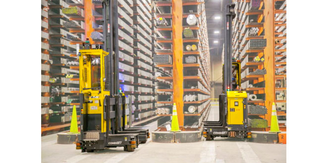 Its design is based on the electric manually operated Combi-GTE model which has long been a very popular choice for service centres due to its ability to work efficiently in rail guided narrow aisles. The first Combi-AGT unit was supplied to Kansas based Steel and Pipe Supply 18 months ago, and since then Combilift have collaborated with a number of leading metal service centres across North America during the development process.