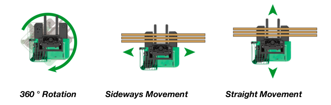 The X series electric four-way reach truck offers three flexible modes: 360° rotation, sideways movement, and straight movement, suitable for narrow aisles and limited spaces.