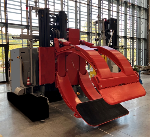 Paper roll clamp fully integrated with AGV hydraulic and controlling system.