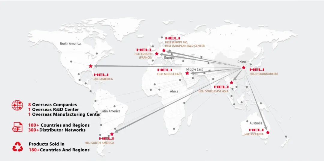 As a enterprise in China's industrial vehicle industry, Anhui Heli has established a solid sales network in more than 80 countries and regions worldwide. Under the new development pattern, Heli is participating in international competition with a more confident posture, driven by innovation, continuously promoting Chinese manufacturing to advance toward the high end of the global value chain.